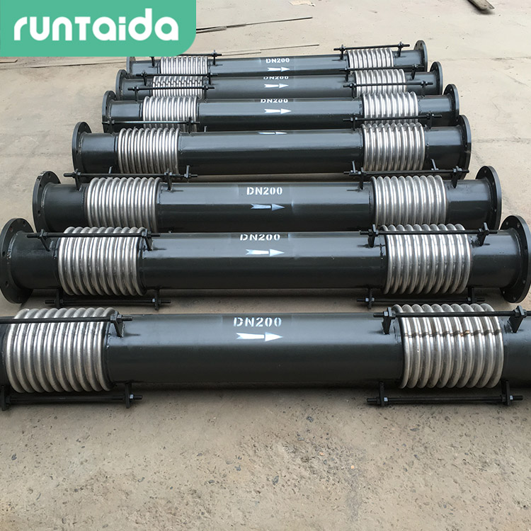 金屬膨脹節(jié)由兩段或三段波紋管,短中間接管及長拉桿等零件構(gòu)成,結(jié)構(gòu)簡單。長拉桿不是承力構(gòu)件。
