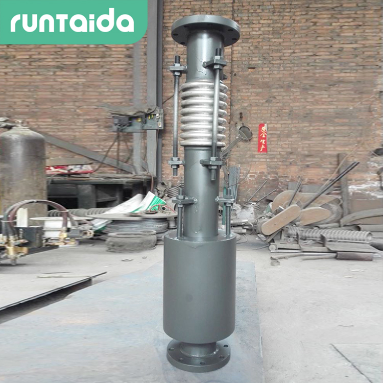 軸向復(fù)式波紋補償器由兩個或多個波紋管串聯(lián)在一起,在波紋管外有能夠保證波紋管在軸向移動時不致失穩(wěn)的外罩。這種膨脹節(jié)可吸收較大的軸向位移。對于這類波數(shù)較多的膨脹節(jié)而言,外罩即是一種保護(hù)裝置以保證膨脹節(jié)在運輸或安裝過程中不損壞波紋管。而且,又保證了膨脹節(jié)工作時的穩(wěn)定性,也是由于外罩的存在,對于膨脹節(jié)的保溫操作也變得簡單易行。